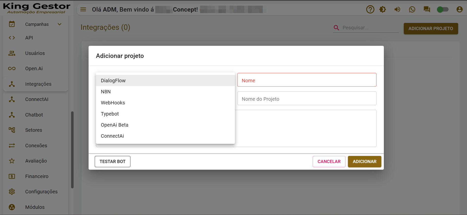 A interface do BlinGoo é moderna, limpa e organizada, facilitando a navegaço e o acesso rápido às funçes.